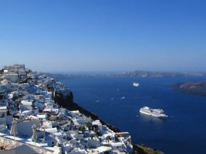 Oia – Oia (se pronuncia Ia), é a mais elevada das vilas com vista para o vulcão, e a mais distante de Fira, a capital. Por estar em um dos pontos mais altos da ilha, Oia oferece as paisagens mais espetaculares, e pode ser considerada a mais famosa das vilas, e o lugar mais exclusivo e badalado onde ficar em Santorini. Uma ótima opção de acomodação lá é o Oia Mare Villas. O pôr-do-sol de Oia é o mais conhecido de todos, e uma atração turística por si só, que atrai multidões todos os dias.