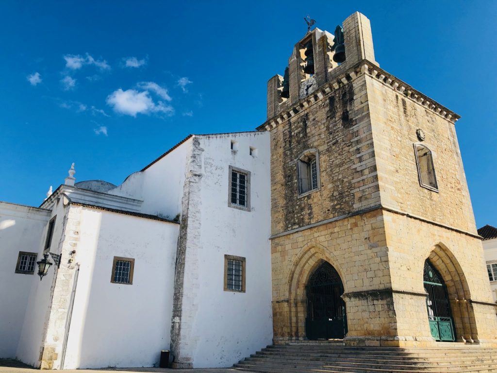 A Catedral de Faro é diferente da maioria das catedrais encontradas na Europa, principalmente pela sua simplicidade. As construções religiosas eram a forma encontrada pela sociedade local para exibir sua fé, mas também sua prosperidade. Quanto maior a catedral, mais fiel e próspera era a sociedade local. Não há dúvidas de que Faro já tee dias mais prósperos no seu passado, mas isto certamente não está refletido na arquitetura da sua catedral. Apesar disso, é um prédio bastante interessante, que tem partes mais baixas e uma entrada com a torre do relógio, adornada por nada menos que 6 sinos, que são visíveis, e em estilo barroco. Quando visitamos, em um domingo à tarde, infelizmente, a catedral não estava aberta, então pudemos apenas apreciar seu exterior.