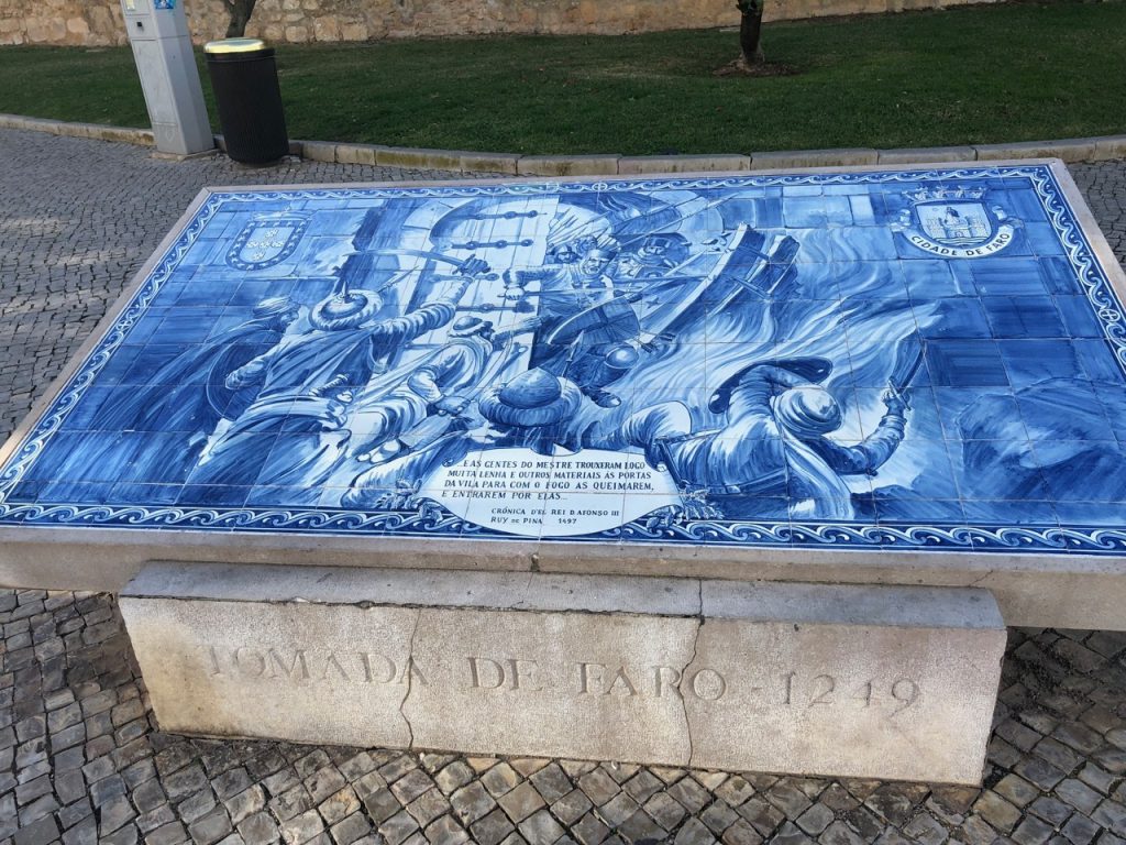 Os azulejos são uma das mais famosas formas de arte de Portugal. Espalhados pela cidade velha, você encontra diversos painéis de azulejos portugueses que contam a história de Faro. Além destes painéis, não deixe de prestar atenção nas placas de ruas, que são todas feitas nos famosos azulejos, a maioria deles bastante antigos.